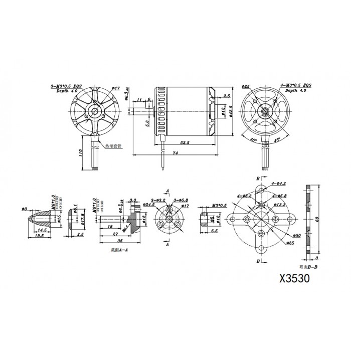 Мотор SunnySky X3530 V3 KV650 для самолетов (SSKY-V3-X3530-650)