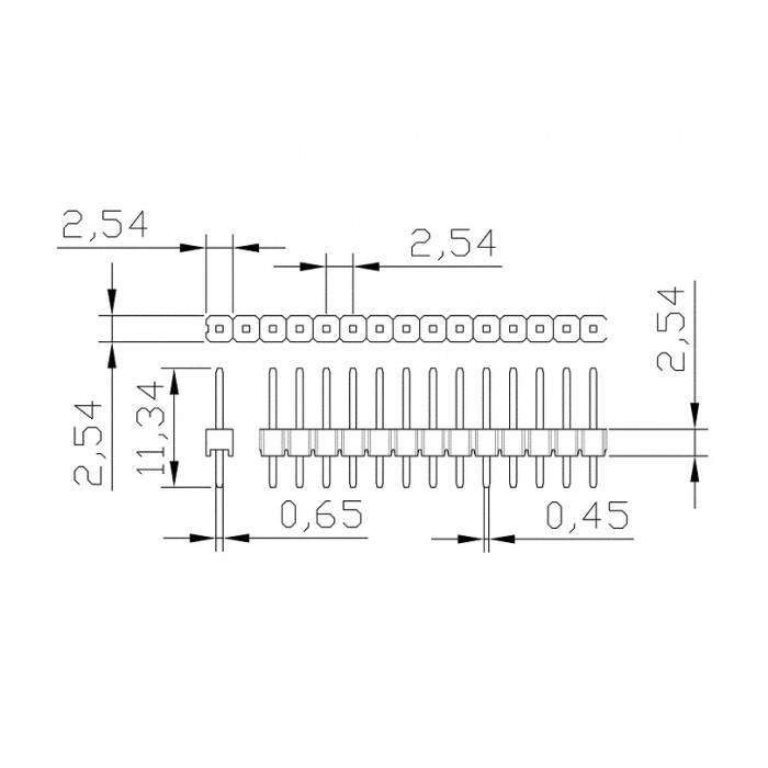 - Вилка прямая PLS 1x40 2.54 мм гребенка медная (желтый) - 100 шт.